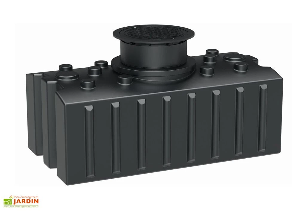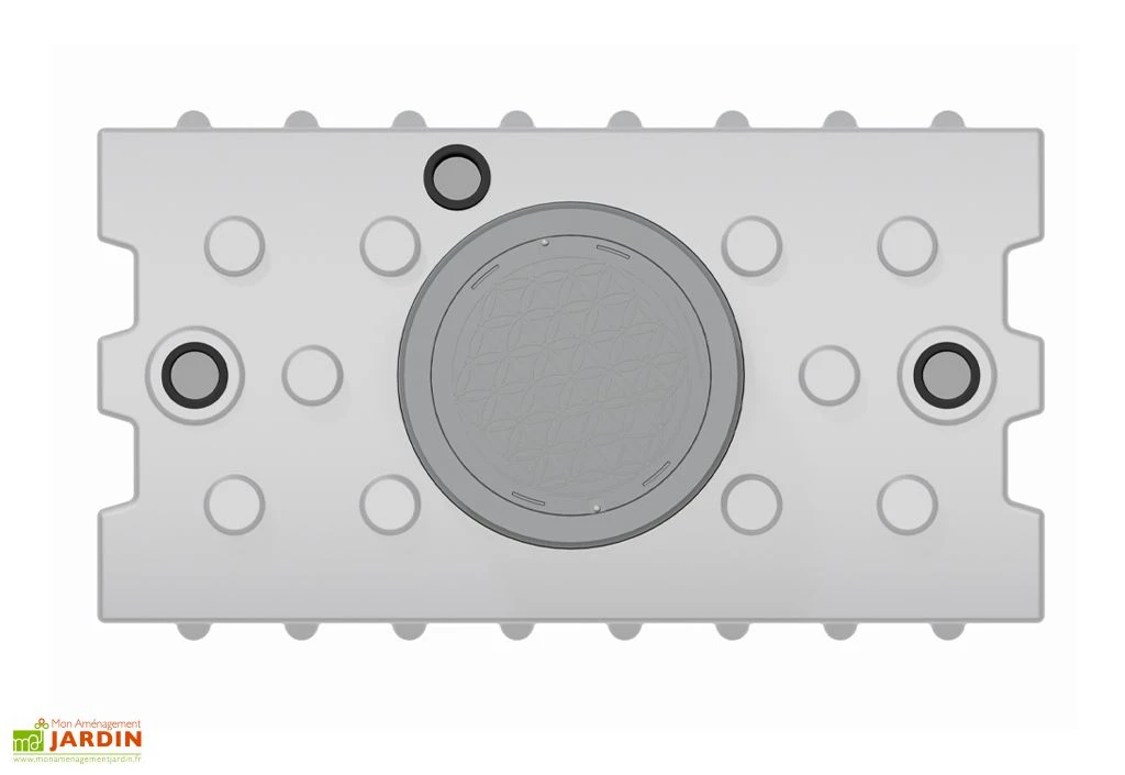 Ce récupérateur d’eau de pluie à enterrer proposé par GreenLife est une cuve plate de 2000 litres conçue en Allemagne. Elle est équipée d’un dôme coulissant extensible pour s’adapter à vos besoins (entre 38 et 58 cm) avec un couvercle de sécurité praticable. Elle comprend également 3 raccords DN 100.