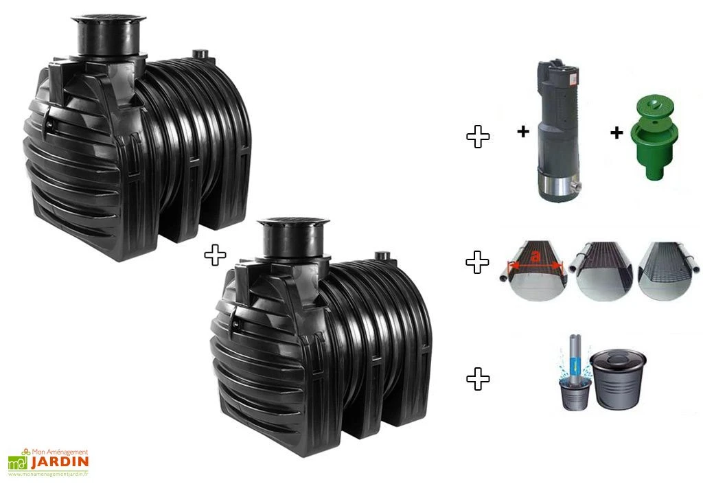 Votre kit de rĂ©cupĂ©ration d’eau de pluie de chez GreenLife comprend deux cuves Ă enterrer de 4500 litres, soit une contenance totale de 9000 litres. Ces deux cuves en polyĂ©thylène sont livrĂ©es avec un dĂ´me de compensation et un couvercle de sĂ©curitĂ© chacune, un stabilisateur d’arrivĂ©e d’eau permettant de ne pas remuer l’eau au fond de la cuve, une pompe immergĂ©e, un boitier de branchement, une protection de gouttière pour Ă©viter les feuilles mortes, un tuyau d’une taille de 5 mètres et du matĂ©riel de marquage. La pompe possède un filtre aspirant lui permettant de ne pas aspirer les impuretĂ©s, un interrupteur automatique et une protection contre la marche Ă sec. La pompe se met en route dès qu’un des robinets est ouvert. Elle rĂ©siste au gel. Votre kit vous servira Ă rĂ©cupĂ©rer l’eau de pluie et Ă la rĂ©utiliser pour entretenir votre jardin. La garantie est de 15 ans sur les cuves et de 2 ans sur le reste du kit. La cuve est livrĂ©e face au domicile du client. Pour le dĂ©chargement, l’aide du client peut ĂŞtre demandĂ©e (prĂ©voir le matĂ©riel ou des personnes sur place).