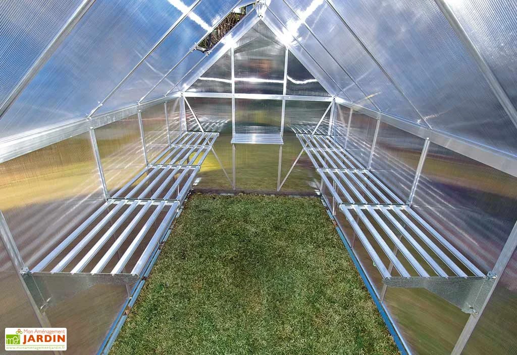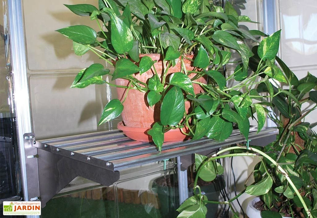 L’étagère de Palram-Canopia s’installe sur les serres de la même marque. Elle mesure 58 cm de profondeur, 42 cm de largeur et 20 cm de hauteur. Elle est en aluminium, complètement insensible à la rouille et ne demande aucun entretien. Bien qu’elle ne pèse que 2 kg, elle est capable de supporter jusqu’à 40 kg.