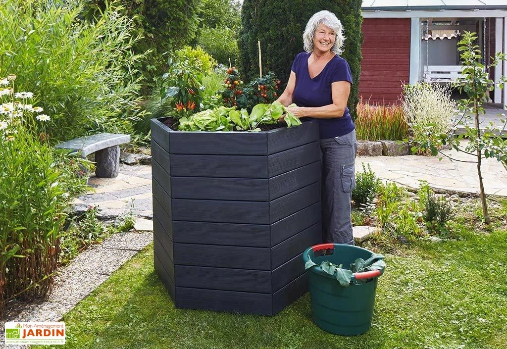 Le carré potager Ergo de chez Garantia est en polypropylène, un matériau résistant aux agressions climatiques. Il ne craint pas les champignons, les insectes ni les variations de températures et peut rester dehors toute l’année sans demander aucun entretien. Le polypropylène imite parfaitement l’aspect du bois pour profiter de ses avantages esthétiques sans ses contraintes d’entretien. Ils sont traités contre les UV pour éviter la décoloration et la fragilisation dues aux rayons du soleil.