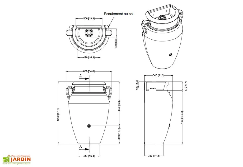 Garantia Récupérateur D’Eau Pluie Amphore Antik Murale 260 L Terracotta