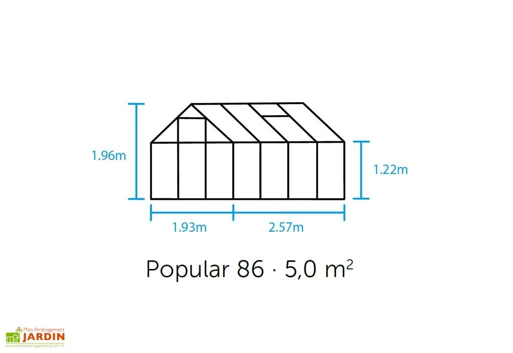 La serre de jardin Popular 86 de chez Halls vous est proposée dans trois coloris au choix afin que vous puissiez opter pour la version qui s’intègrera le mieux dans votre extérieur. Elle est dotée d’une solide structure en aluminium, un matériau insensible à la rouille qui ne demande ni entretien, ni traitement particulier. Notez qu’afin de garantir la bonne stabilité de cette structure, il est conseillé de la monter sur une embase telle que celle proposée dans l’onglet « Accessoires ».