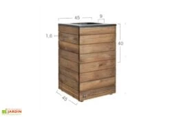 Le pot de fleurs est composé de 4 bacs de 2 tailles différentes (88 cm de haut pour les plus grands, et 80 cm de haut pour les petits), et 4 pieds. Il est ainsi possible de l’installer aligné le long d’un mur, ou en carré. L’assemblage est très simple, seuls 4 boulots suffisent ! (fournis).