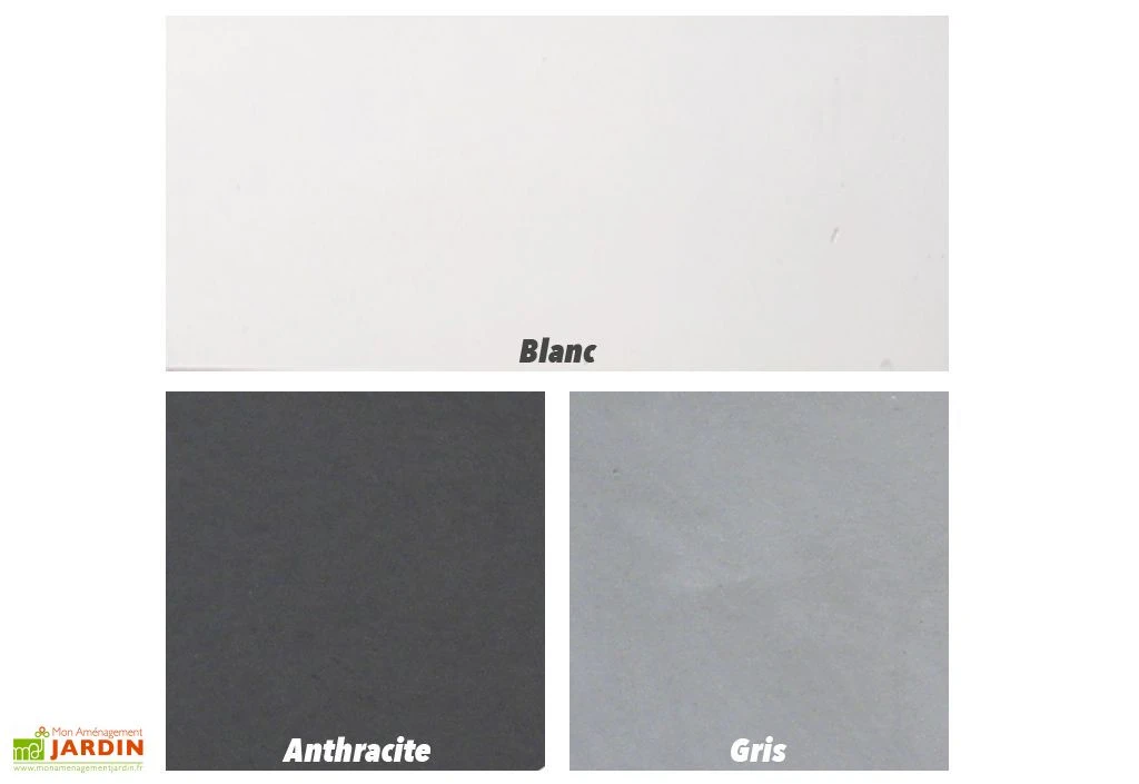 Veuillez noter que la jardinière couleur anthracite est recouverte d’une seconde couche de couleur destinée à fixer le coloris et à donner de la durabilité au bac. Elle aura donc un rendu quasiment noir.