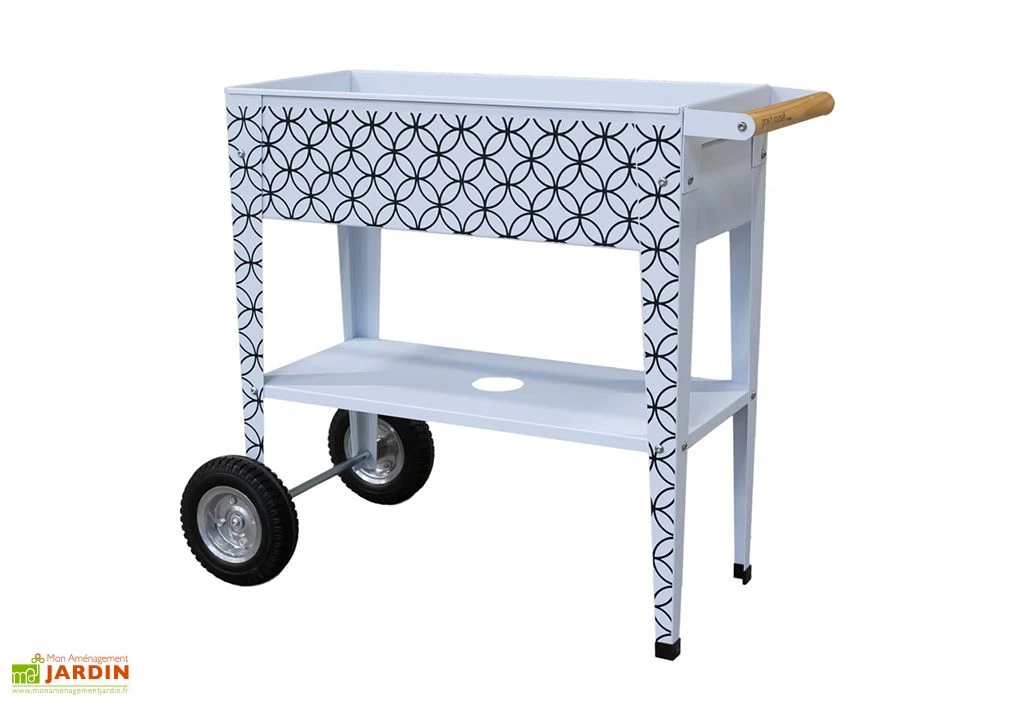 La jardinière surélevée est fabriquée en acier. Grâce à la peinture poudre qui le recouvre, tout le chariot de jardinage est rendu insensible à la rouille, mais aussi au gel et aux intempéries. Ses bords arrondis vous garantissent une sécurité en cas de cognements et chocs éventuels.