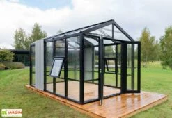 La serre de jardin est équipée d’une fenêtre de toit qui permet d’aérer facilement l’intérieur et ainsi contrôler la température et le taux d’humidité. Elle est également équipée d’une double porte de 120,5 x 194 cm (l,h). Pratique, elle permet d’entrer et sortir confortablement de l’abri même avec un équipement volumineux et d’aider à l’aération de la serre.