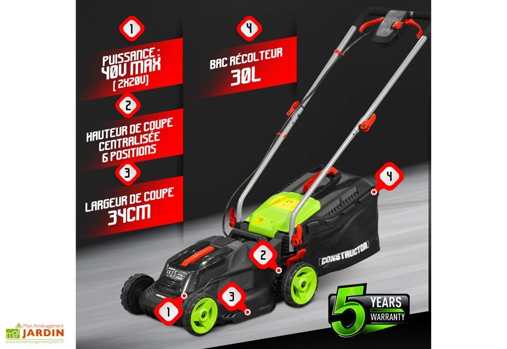 Cette tondeuse à batterie sans fil est garantie 5 ans.